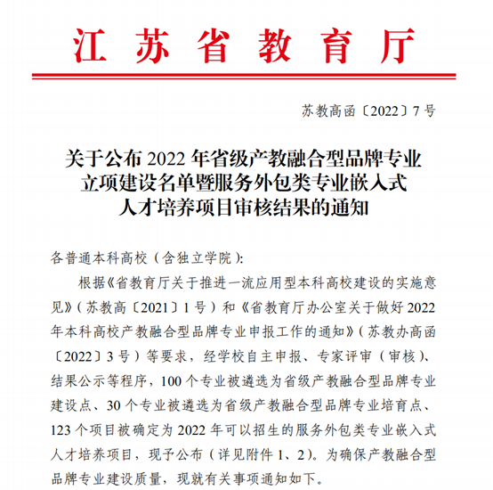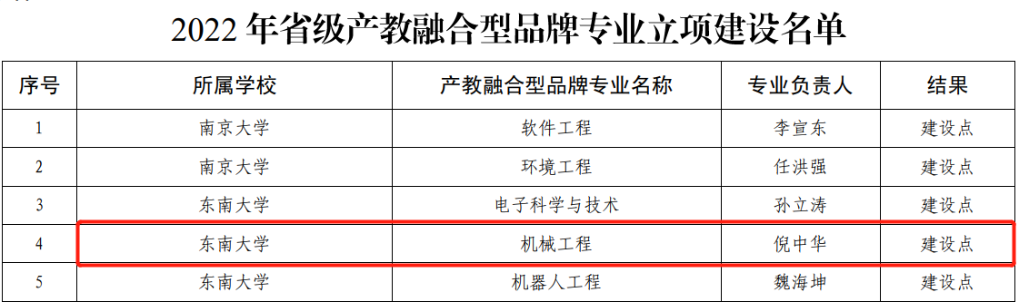 近日,江苏省教育厅发布了《关于公布2022年省级产教融合型品牌专业立项建设名单暨服务外包类专业嵌入式人才培养项目审核结果的通知》(苏教高函〔2022〕7号),我院机械工程专业获批省级产教融合型品牌专业建设点。