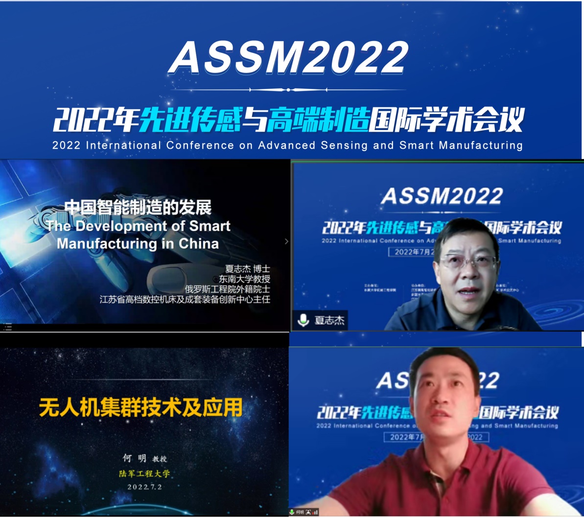 “先进传感与高端制造国际学术会议(ASSM 2022)”于2022年7月2日在南京召开(线上)。本次会议由金年会信誉至上机械工程学院主办,江苏省高档数控机床及成套装备创新中心、新型光源技术及装备教育部工程研究中心、江苏省微纳生物医疗器械设计与制造重点实验室、江苏省空天机械装备工程研究中心、安徽理工大学、河海大学、合肥工业大学等协办。