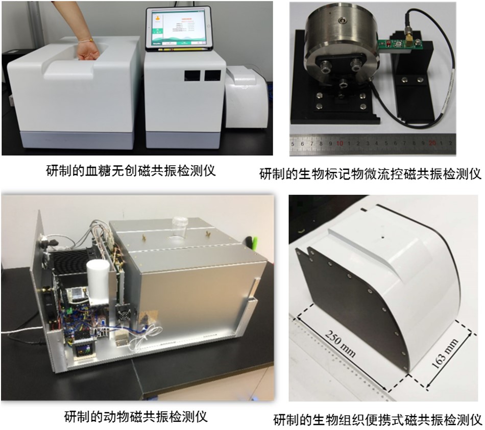 精准医学与磁共振仪器方向主要通过设计与制造高性能微型化磁共振磁体、高灵敏度射频探头和高精度磁共振信号控制系统,研制高分辨率便携式磁共振弛豫和成像设备,研究日常环境中电磁场对磁共振信号的干扰机制与屏蔽方法,发掘生物样本的低场磁共振信号增强机理,实现血糖无创磁共振检测、生物标记物快速磁共振检测和人体疾病床旁磁共振诊断等,提升我国高端医疗器械研制水平,解决面向人民生命健康问题。该研究方向开展了广泛了国际合作与交流,近年来累计承担了国家自然科学基金重大科研仪器研制项目、面上项目等数十项科研课题,研究经费超千万元,在国际权威期刊上发表高水平SCI论文20篇以上,申请国家发明专利35项,申请国际专利2项。