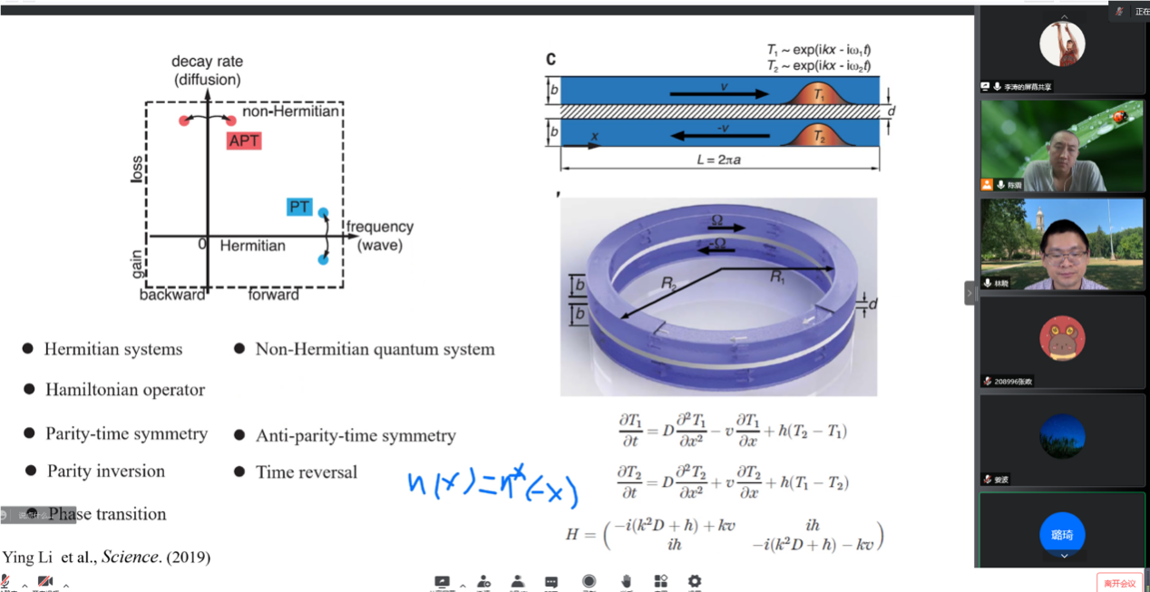 2022年6月3日,由金年会信誉至上机械学院联合发起的传热学-光子学-拓扑学第一次圆桌讨论会圆满结束。 来自美国宾州州立大学(Pennsylvania State University)机械系的朱林晓教授,上海交通大学物理与天文学院的袁璐琦教授,和金年会信誉至上机械学院的陈震教授参与了讨论。三位教授就各自的研究领域进行了深入的探讨,将光子学、拓扑学、传热学进行了揉合。理论物理学出身的袁璐琦教授从基础物理的层面,对近期的热点科学研究“从量子力学的对称性重新审视传热现象”进行了深入浅出的讲解,打破了行业间“隔行如隔山”的壁垒,令参与讨论的其他两位教授和旁听的听众受益匪浅。